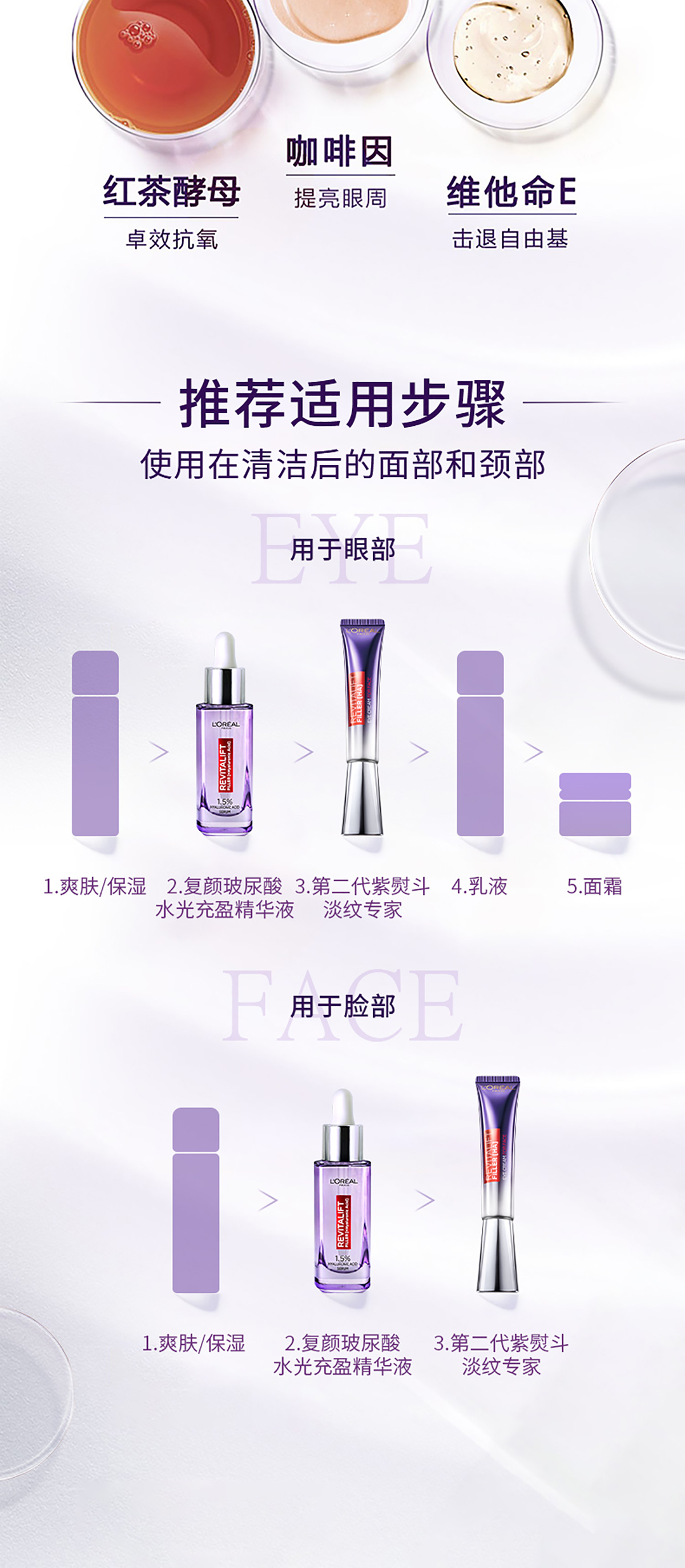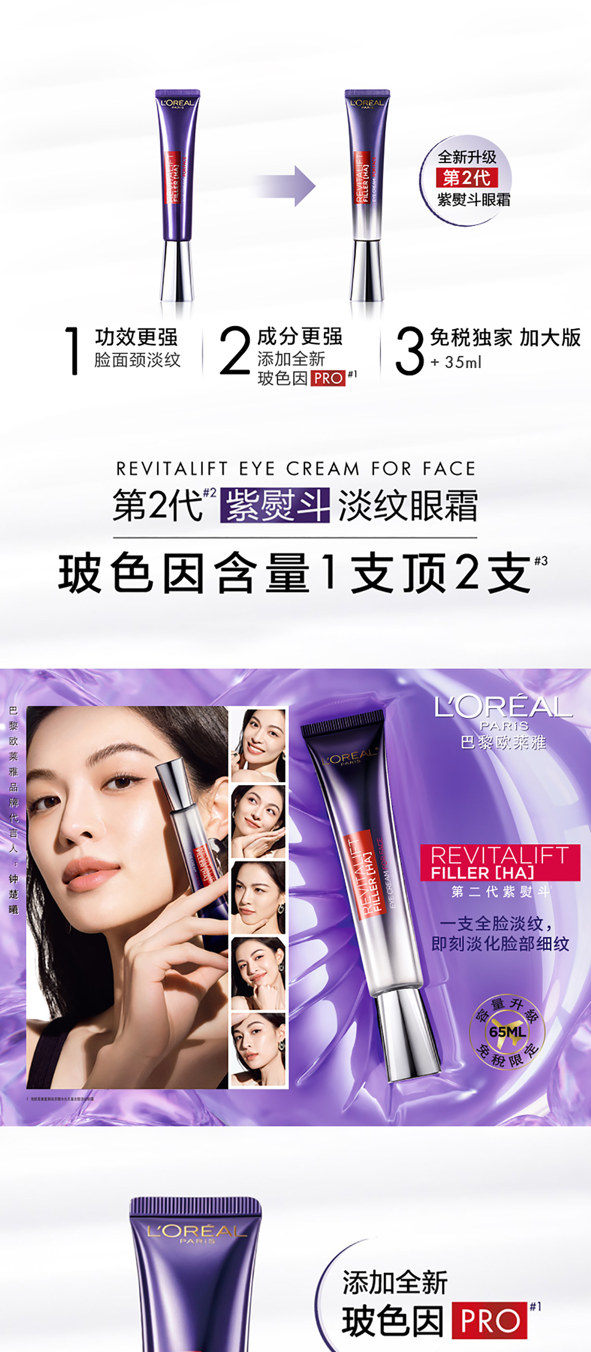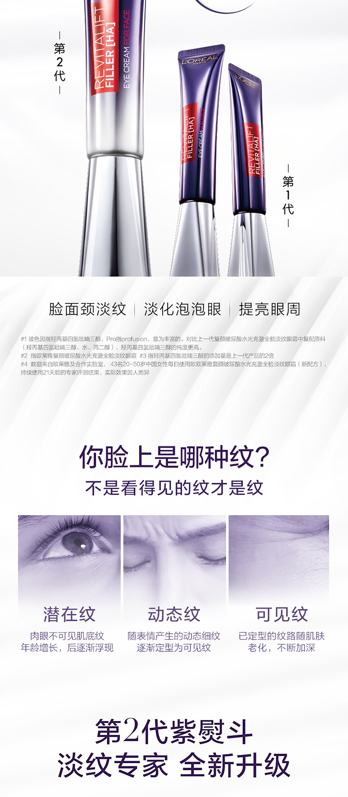 L’Oréal 欧莱雅复颜玻尿酸水光充盈眼霜 紫熨斗 全脸淡纹 65ml